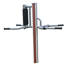 器材主承载立柱采用100×100×t3mm优质钢管(方管)🐀,主横梁采用Φ42×t3mm优质钢管🕴,扶手梁采用Φ33×t2.75mm优质钢管♛。外包采用62×10mm插入型塑木型材,立柱包角采用独有的白色高压铝型材,美观🦘🧑‍🦰、大方🚵🏽‍♀️🧝🏽‍♀️,器材看起来更具特色。器材各部位螺栓、弹垫等紧固件均采用不锈钢材质,且具有可靠的防松、防盗措施。